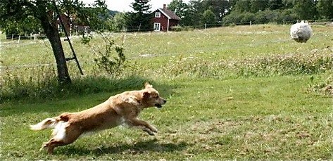 Den härliga bilden med full fart mot bollen har Carls barnbarn Stella tagit. Att Nadja hunnit bli 7 år märks inte - jo, hon är lydigare nu.