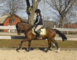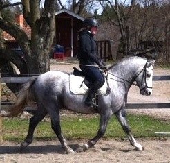 En vacker ädel connemara - som gjord för både dressyr och hoppning. Tuff - kanske fälttävlan? Väl inriden och utbildad och redo för tävlingsbanan. Har redan syskon som tävlar högt - en utmaning. Det blir hoppning i framtiden.