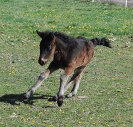Pappa Spadi från Gröna Gången är en unghingst e. Isar frà Keldudal. Blup 120. Mamma Skerpla från Tåkern är förstaklassbedömd så vi väntar oss mycket av denna lilla tjej. Hon är rejäl och oskygg - en prakttös.